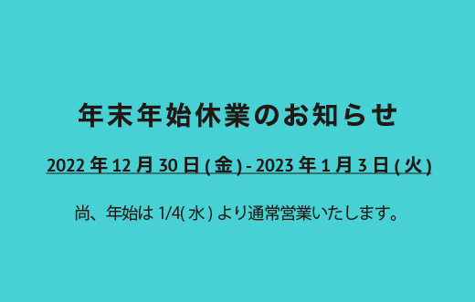 年末年始休業のお知らせ【2022年12月30日(金)〜2023年1月3日(火)】