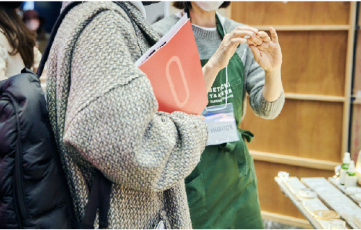 私たちは、主催者・出展者・来場者の 者間がクリエイションを中心に平等かつ多様につながり、それらがまるでマーブル模様のように時代と共にやわらかに変容し てゆく、そんなしなやかなコミュニティーを長期に渡り創造したいと考えています。つまり、玉石混交の来場者を追い求めるより、クリエイションに興味や理解があり、 出展者の魅力や豊かさの本質を見極められるお客様との、質の高い出会いの場を作りたい、そう思っています。